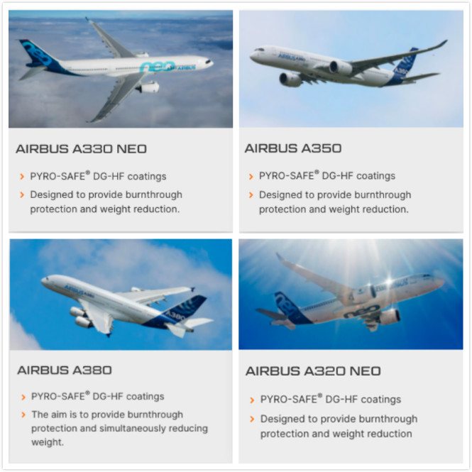 本屆展會主要參展材料有針對航空飛機(jī)使用的兩款防火涂料(大連義邦航空發(fā)動機(jī)及附件防火、SVT飛機(jī)內(nèi)飾防火),Syscom航空線纜減重多功能防波套,Syscom金屬化高分子纖維絲,Haydale納米石墨烯導(dǎo)電填料,Xantu. Layr納米纖維膜,其中SVT防火涂料在歐洲有成熟的應(yīng)用業(yè)績,廣泛使用在空客A350等飛機(jī)中,是首次亮相。