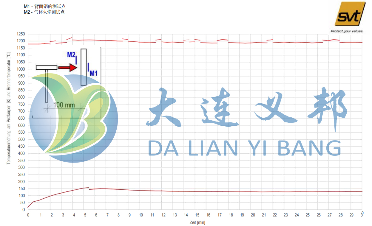 大連義邦SVT膨脹型防火涂料在明火條件下輕薄的涂層會瞬間膨脹超過自身厚度25倍以上250mm,經(jīng)過30分鐘溫度持續(xù)策略,背板溫度持續(xù)保持在150°度以內(nèi),且膨脹薄膜無大塊粉末脫落現(xiàn)象。