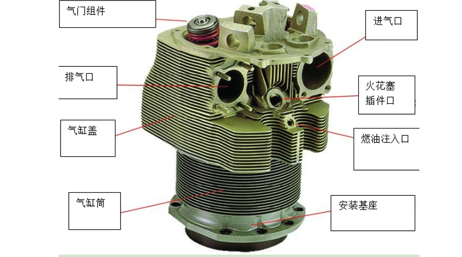 發(fā)動機中產(chǎn)生動力的部分稱為氣缸。每個氣缸是由氣缸蓋和氣缸筒兩大部分組成的總成。在組裝時,氣缸蓋通過加熱膨脹,然后擰緊在已冷卻的氣缸筒上。當(dāng)頭部冷卻和收縮并且槍管升溫和膨脹時,就會形成氣密接頭。大多數(shù)使用的氣缸都是以這種方式構(gòu)造的,使用鋁合金氣缸蓋和鋼制氣缸筒。