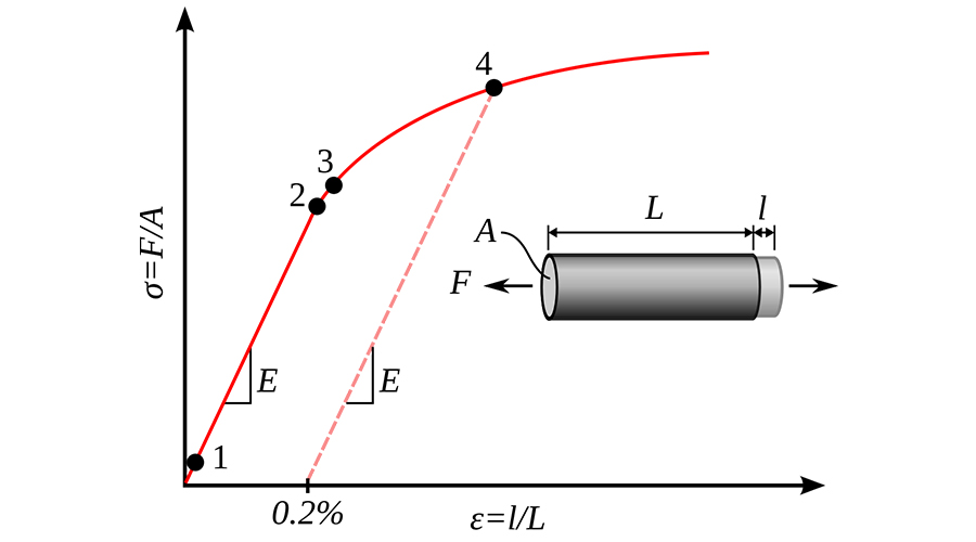顯示有色金屬合金,典型的屈服應變曲線