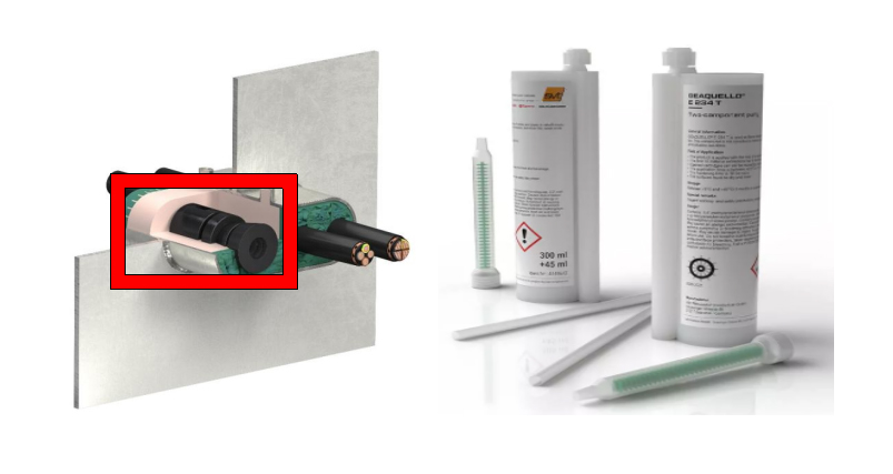 GEAQUELLO?E234用于GEAQUELLO?E 950密封系統(tǒng)中電纜和管道穿透的改造模塊,新船制造時,放置于密封系統(tǒng)中,作為今后線纜改造的預留位置,新增電纜時,用鉆頭將模塊中間鉆通,電纜穿過,再用GEAQUELLO E234T密封劑 將電纜周圍的環(huán)形間隙密封。