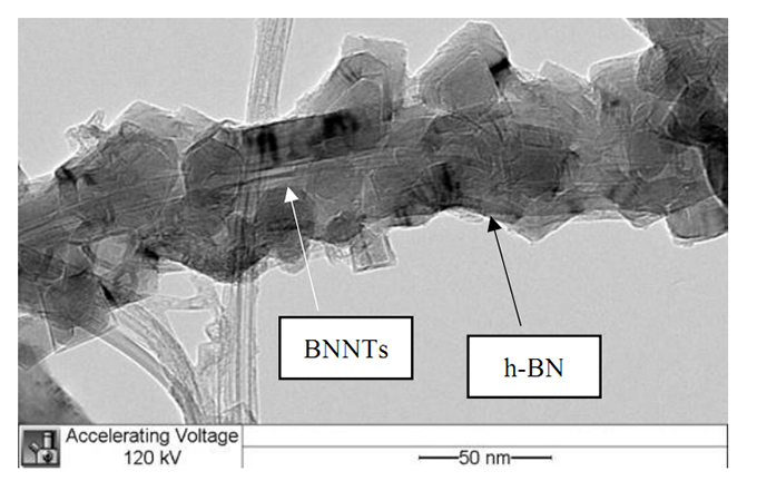 值得重點(diǎn)介紹的是大連義邦的氮化硼納米管(Boron Nitride NanobBarb,簡(jiǎn)稱BNNB)。這種材料是六方氮化硼結(jié)晶體成核于納米管外表面的氮化硼納米管。氮化硼納米管作為基材的增強(qiáng)體,而不規(guī)則的六方氮化硼結(jié)晶體則增強(qiáng)了納米管與基材之間的交聯(lián)。